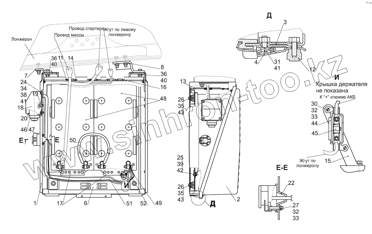 Каталог запасных частей к технике: МАЗ-5440E9. Установка аккумуляторных батарей 650119-3700008