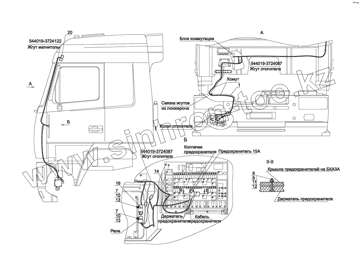 Каталог запасных частей к технике: МАЗ-5440E9. Установка электрооборудования подогревателя 544019-3700085