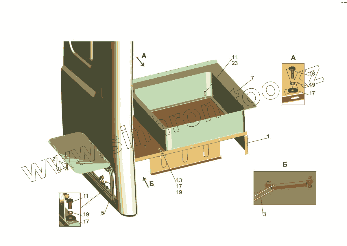 Каталог запасных частей к технике: МАЗ-5440E9. Установка инструментального ящика 6430-5000115-020