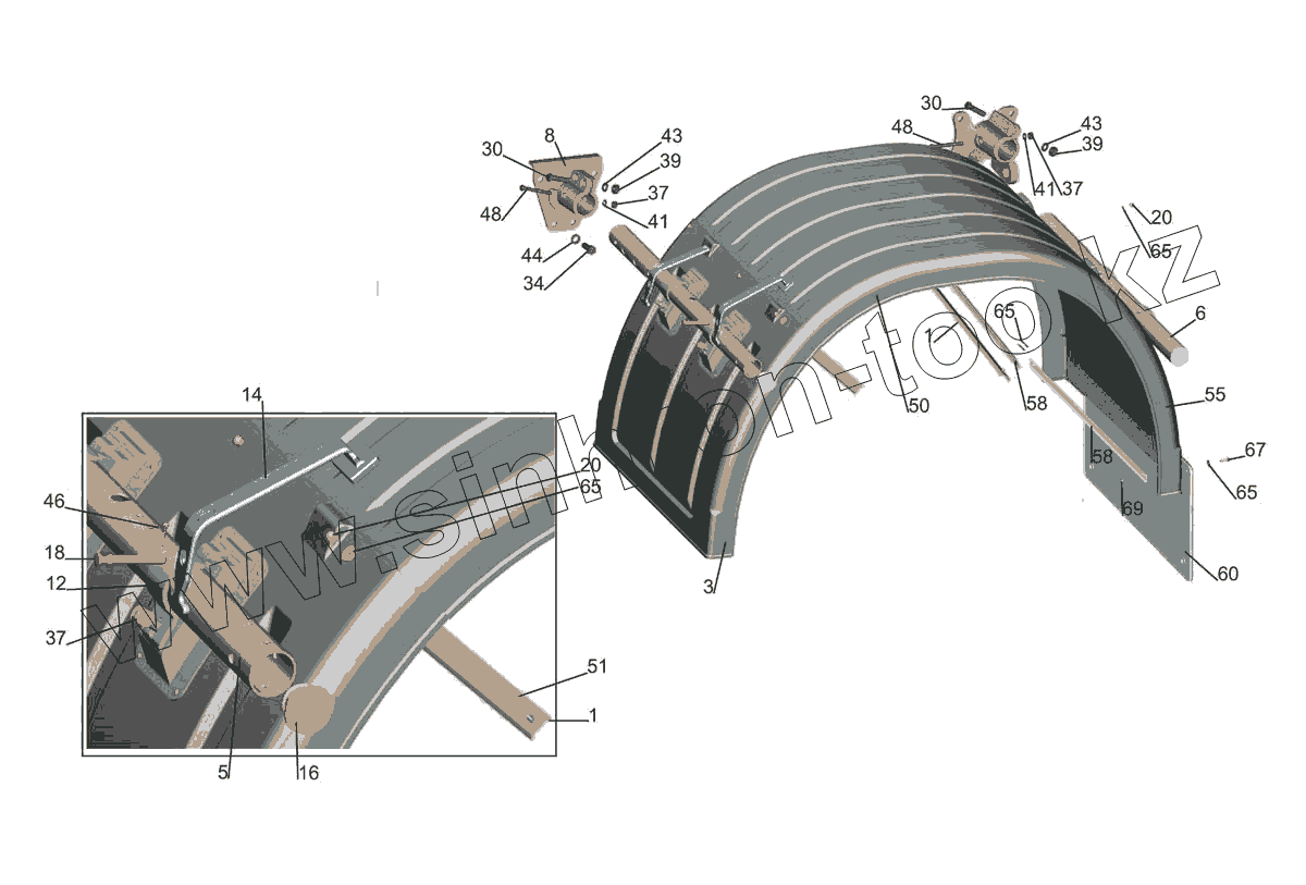 Каталог запасных частей к технике: МАЗ-5440E9. Установка крыльев 544019-8500048-075