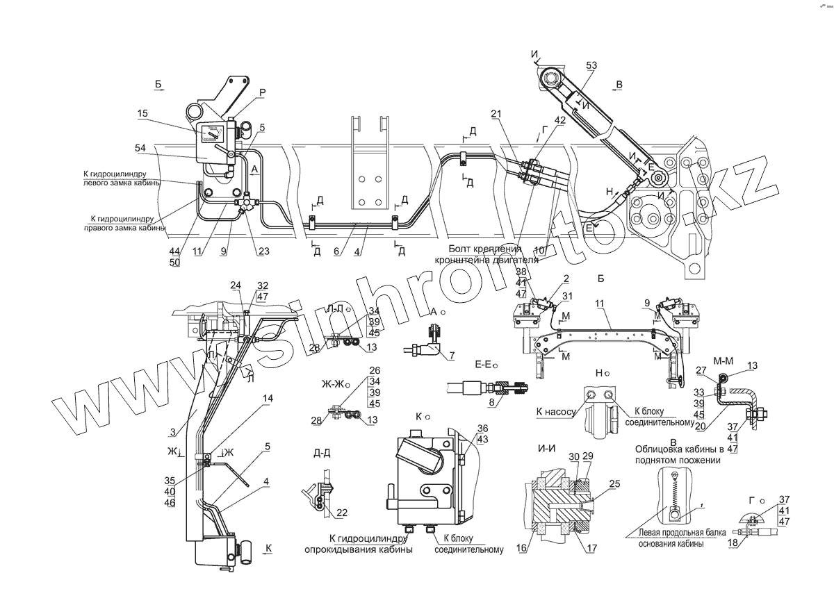 Каталог запасных частей к технике: МАЗ-5440E9. Установка механизма подъема кабины 544019-5000040-010