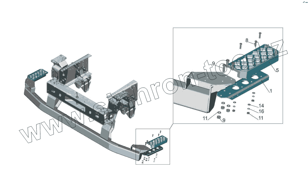 Каталог запасных частей к технике: МАЗ-5440E9. Установка нижней подножки 643019-8400016-010