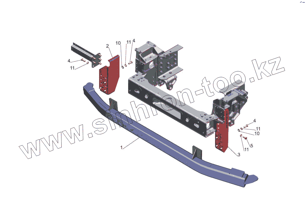 Каталог запасных частей к технике: МАЗ-5440E9. Установка переднего противоподкатного бруса 643018-2800030-010