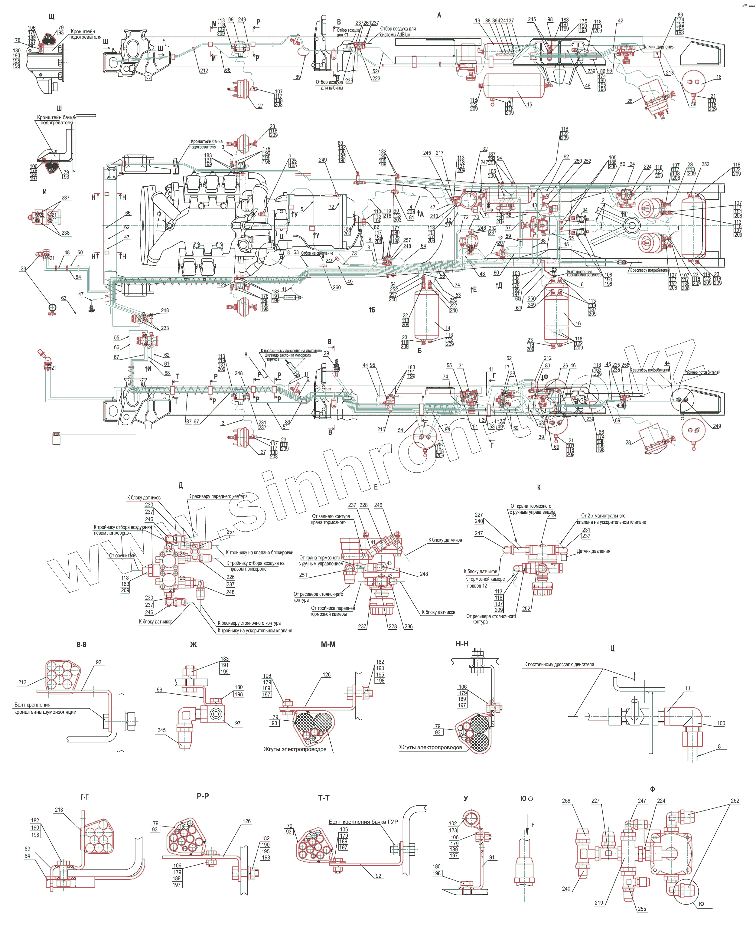 Каталог запасных частей к технике: МАЗ-5440E9. Установка пневмотормозов 5440E9-3500003 (-010)