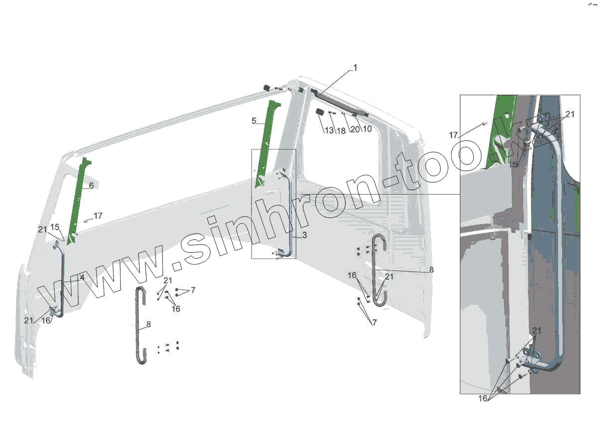 Каталог запасных частей к технике: МАЗ-5440E9. Установка поручней в кабине 6430-8200030