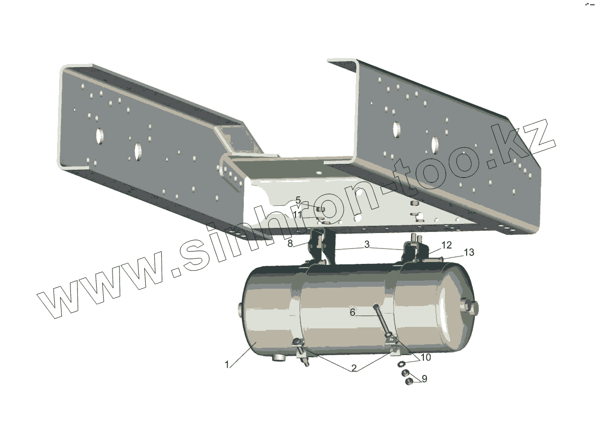 Каталог запасных частей к технике: МАЗ-5440E9. Установка ресивера 544019-3513007