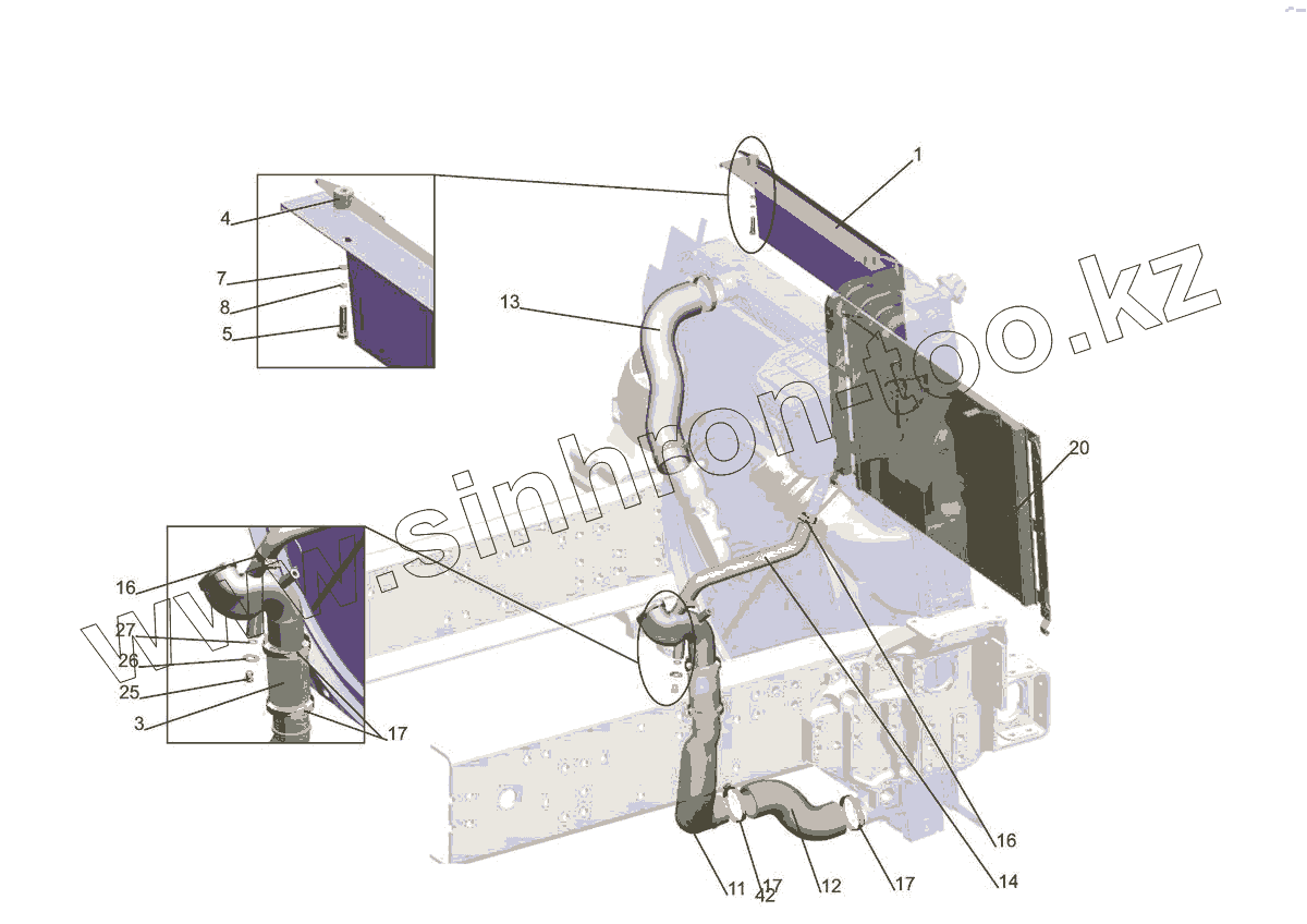 Каталог запасных частей к технике: МАЗ-5440E9. Установка системы охлаждения 544019-1300005