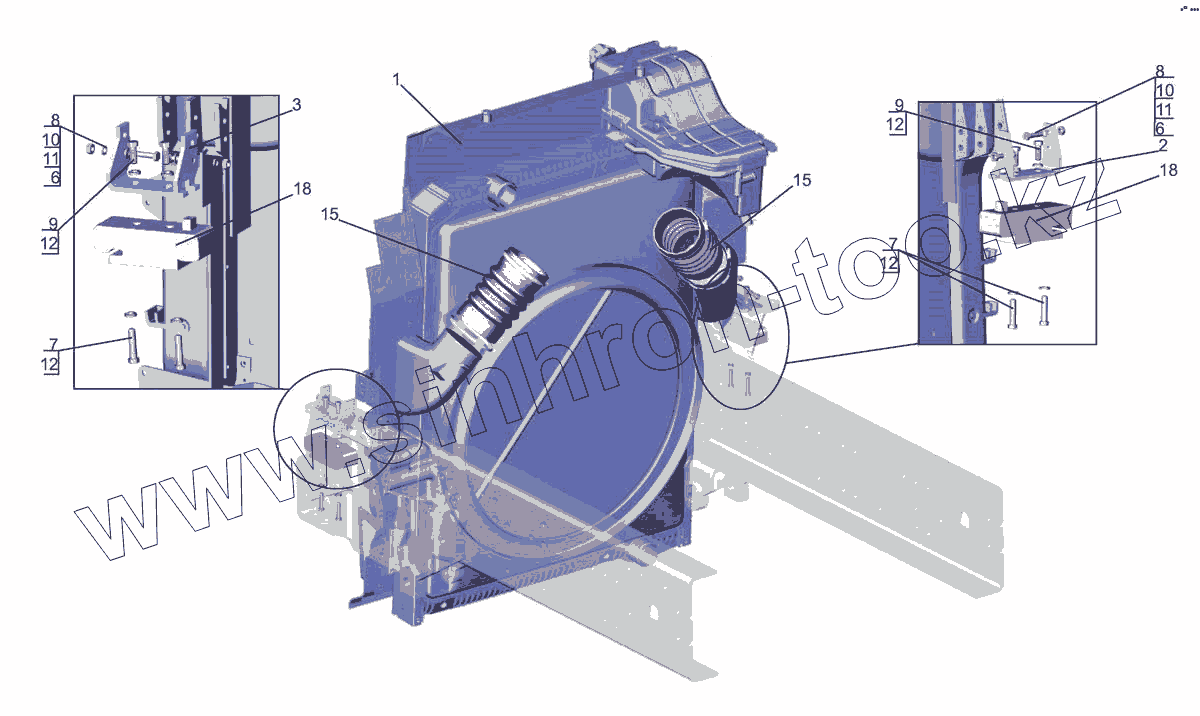 Каталог запасных частей к технике: МАЗ-5440E9. Установка системы охлаждения наддувочного воздуха 544019-1300040