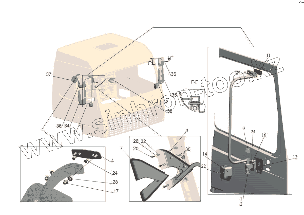 Каталог запасных частей к технике: МАЗ-5440E9. Установка зеркал 6430-8200005-020