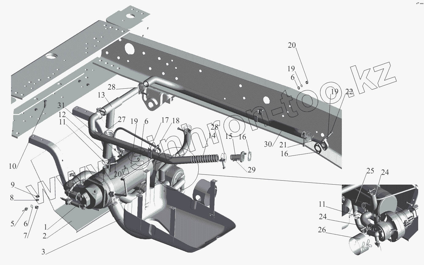 Каталог запасных частей к технике: МАЗ-551605. Крепление предпускового подогревателя 642290-1015001