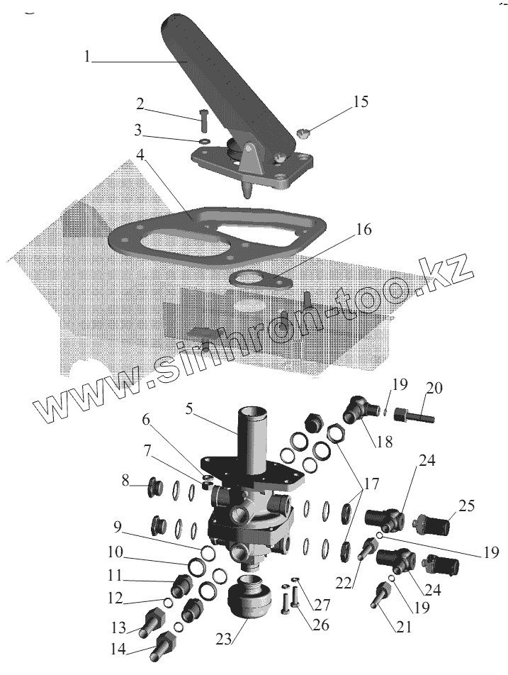 Каталог запасных частей к технике: МАЗ-551605. Крепление тормозного крана 64221-3514004-20