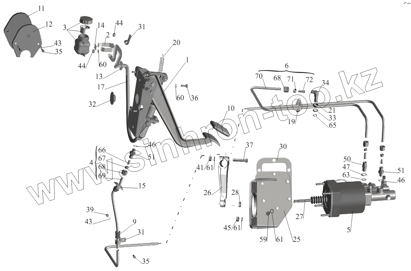 Каталог запасных частей к технике: МАЗ-551605. Механизм управления сцеплением