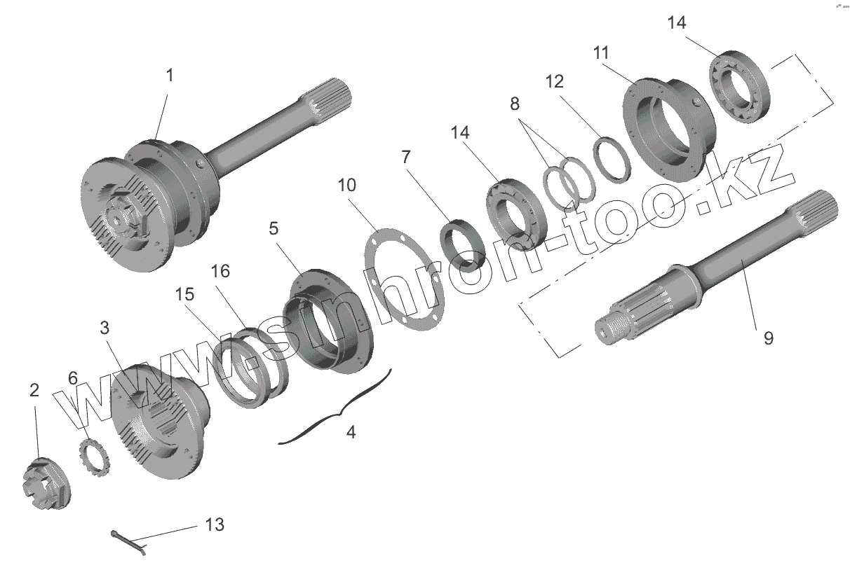 Каталог запасных частей к технике: МАЗ-551605. Мост средний. Вал задний