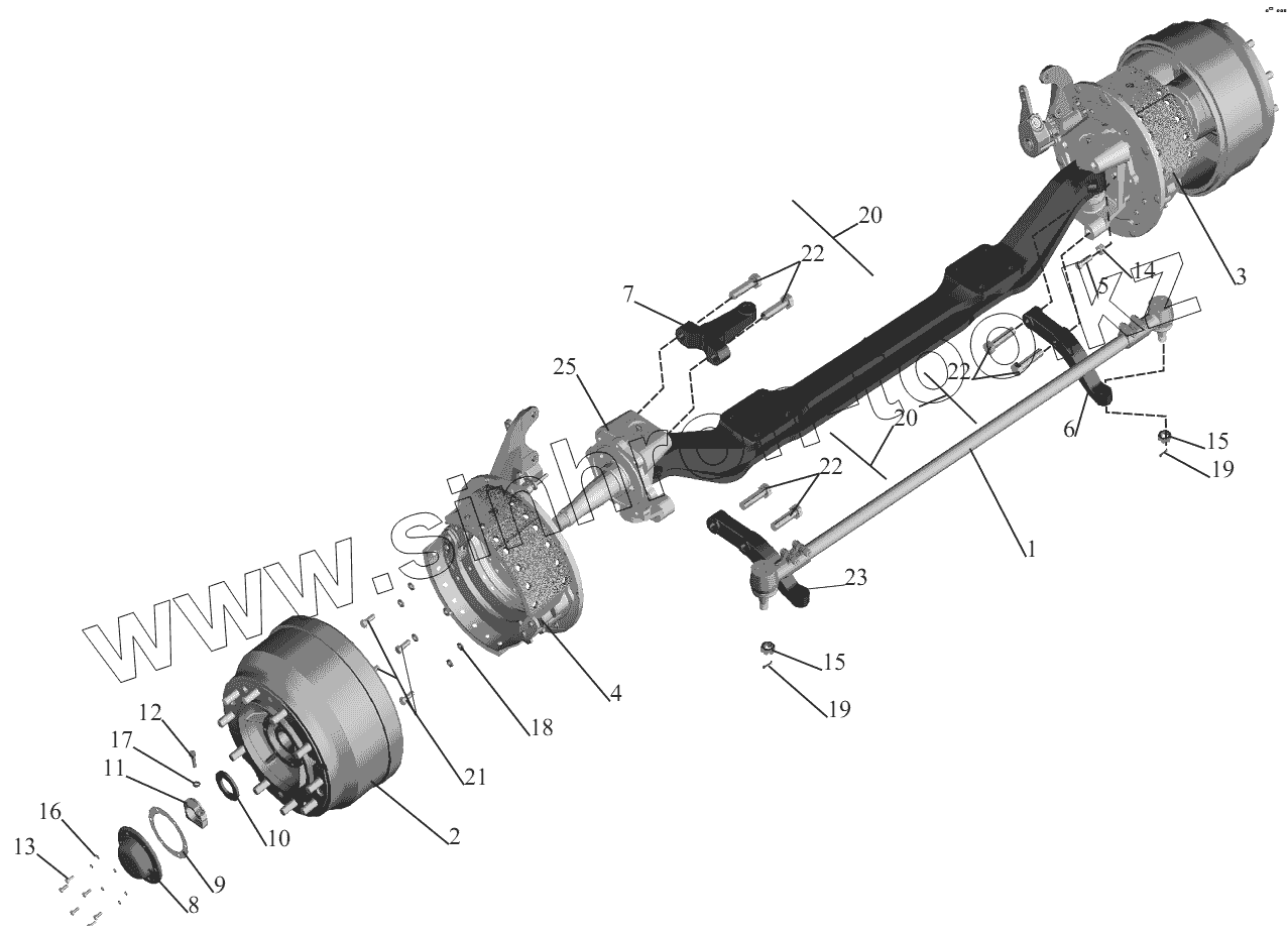 Каталог запасных частей к технике: МАЗ-551605. Передняя ось
