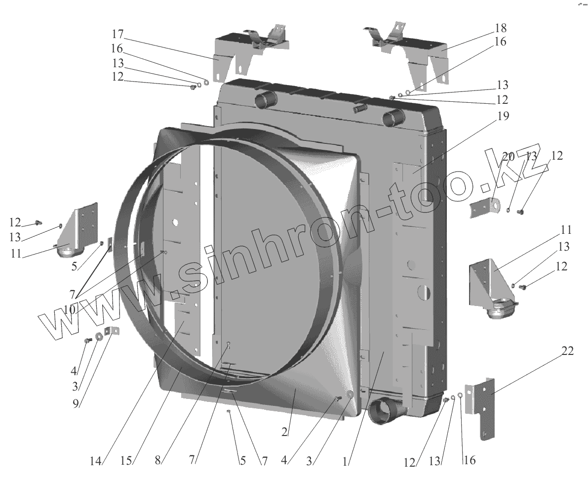 Каталог запасных частей к технике: МАЗ-551605. Радиатор с кожухом