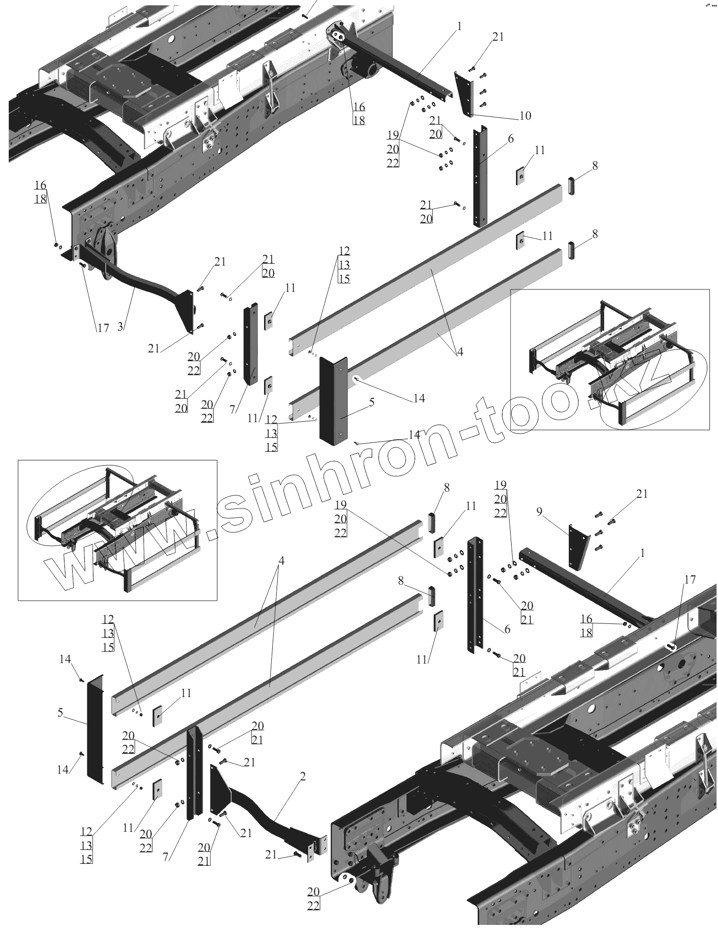 Каталог запасных частей к технике: МАЗ-551605. Установка бокового ограждения 551605-2800040-010
