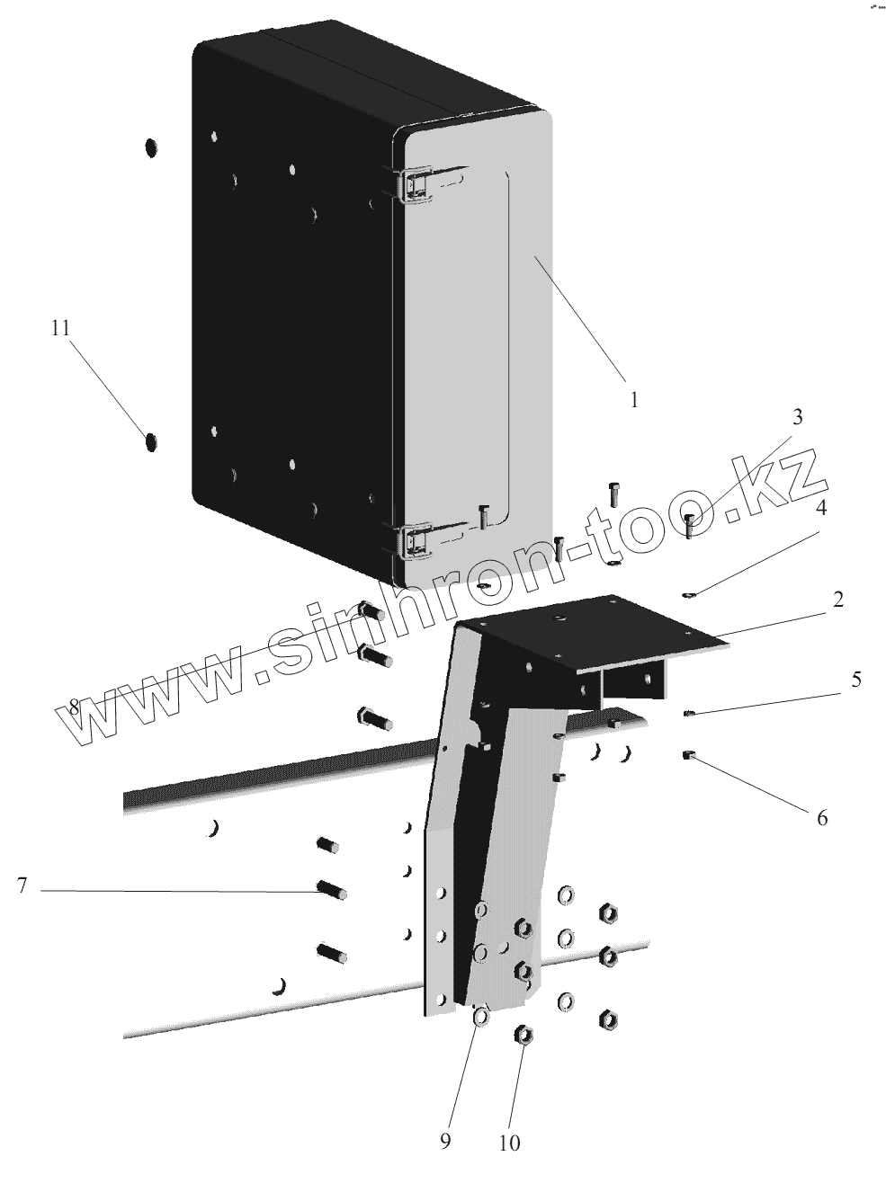 Каталог запасных частей к технике: МАЗ-551605. Установка инструментального ящика 551605-8500009