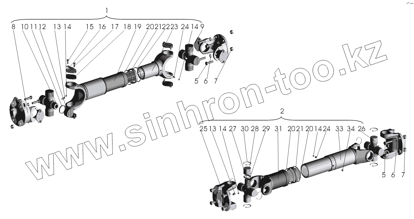 Каталог запасных частей к технике: МАЗ-551605. Установка карданных валов