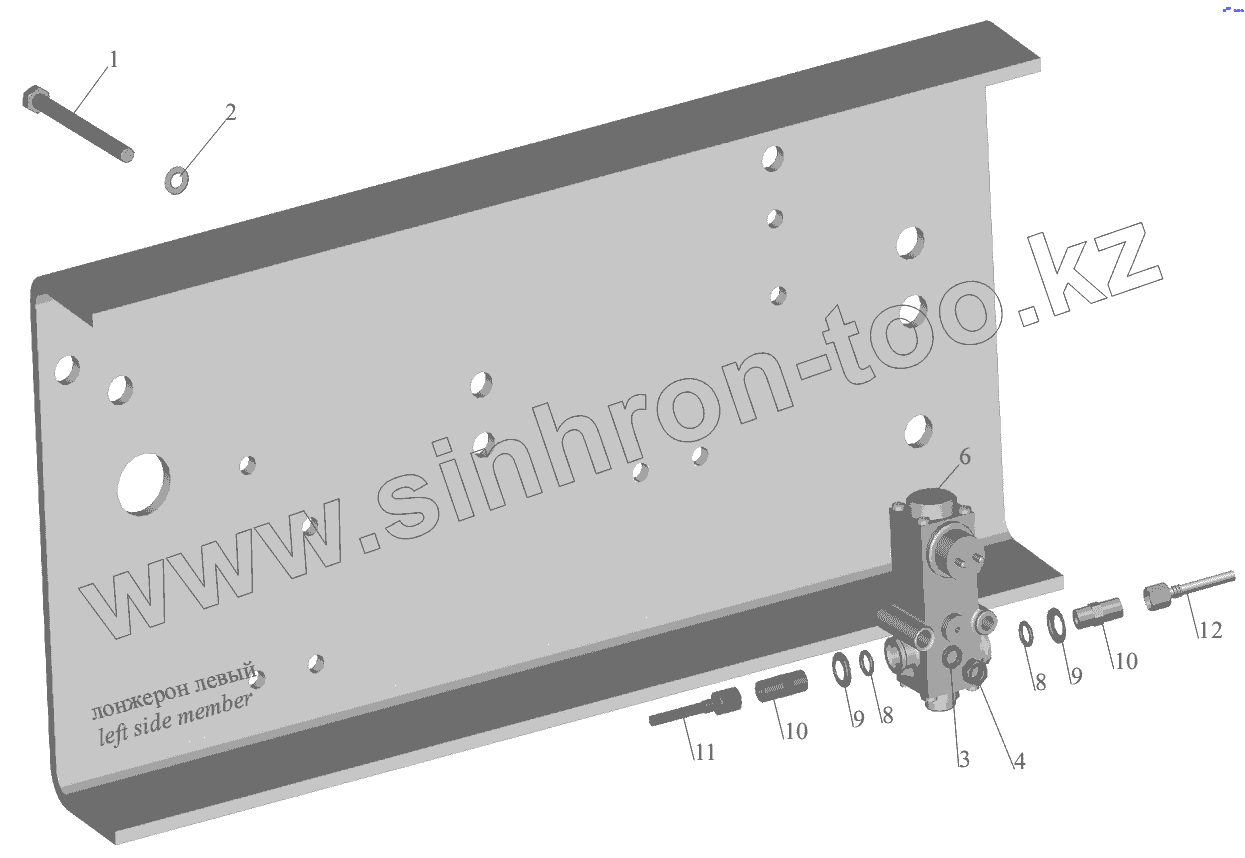 Каталог запасных частей к технике: МАЗ-551605. Установка клапана пропорционального присоединительной арматуры