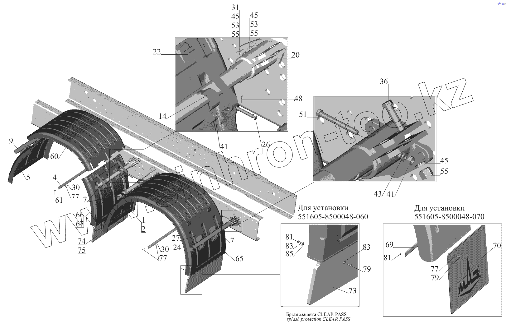 Каталог запасных частей к технике: МАЗ-551605. Установка крыльев 551605-8500048-060 (-070)