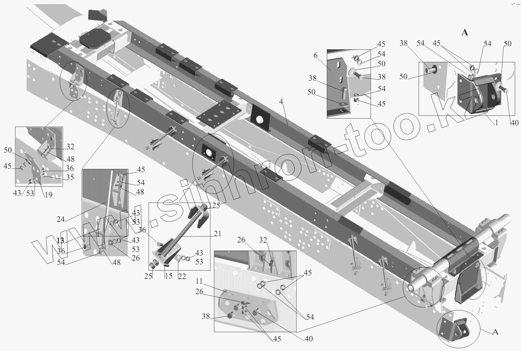 Каталог запасных частей к технике: МАЗ-551605. Установка надрамника 5516-8600002-030