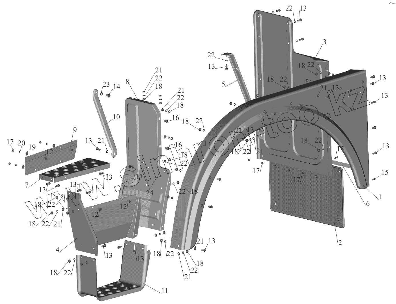 Каталог запасных частей к технике: МАЗ-551605. Установка оперения на большую кабину 64221-8400020