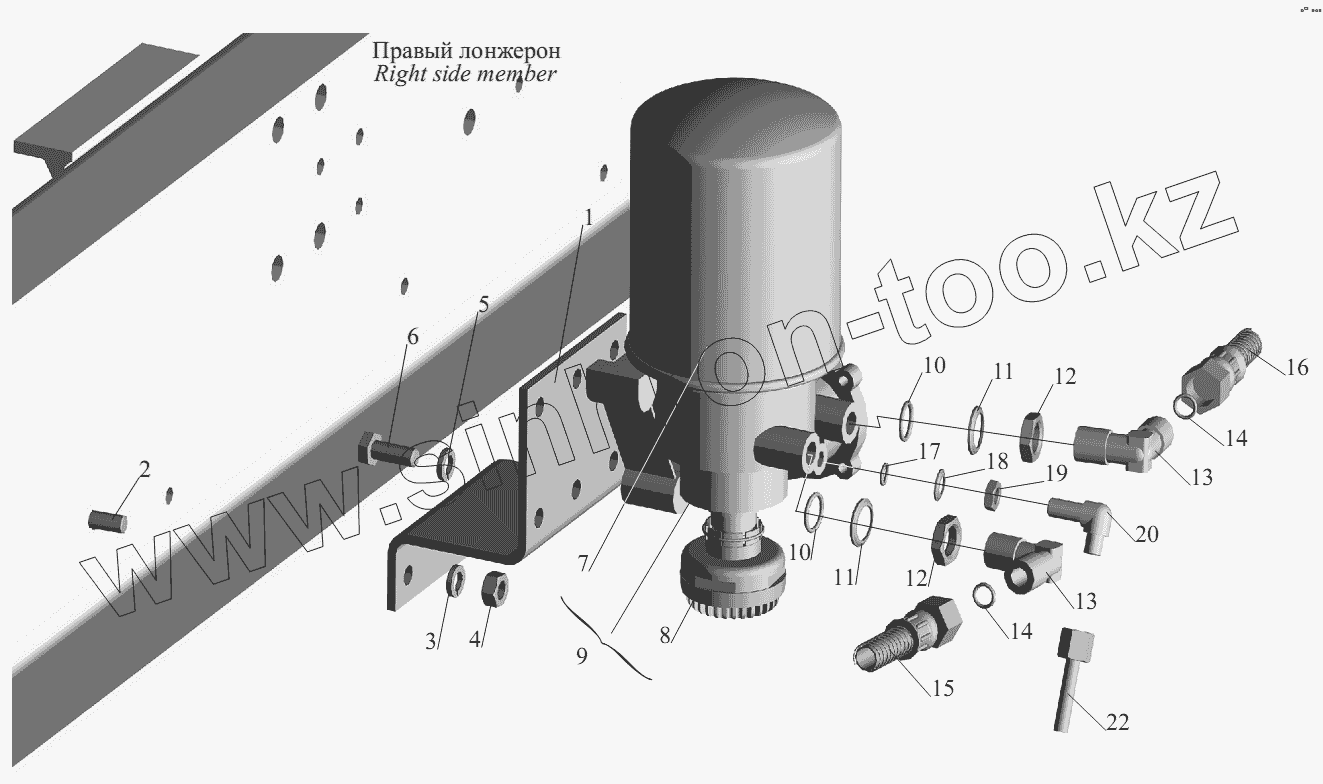 Каталог запасных частей к технике: МАЗ-551605. Установка осушителя воздуха 650108-3536004