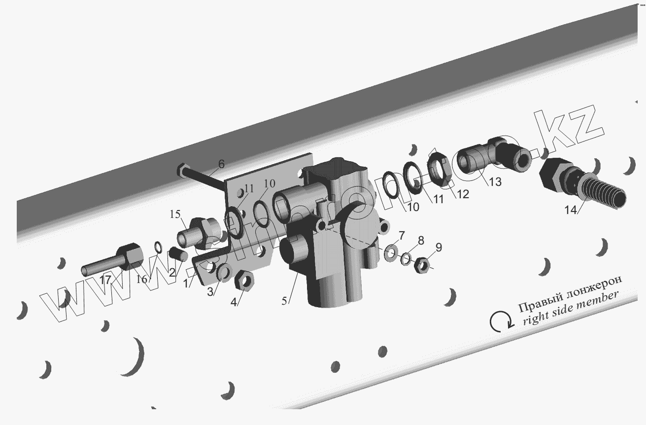 Каталог запасных частей к технике: МАЗ-551605. Установка передних модуляторов и присоединительной арматуры