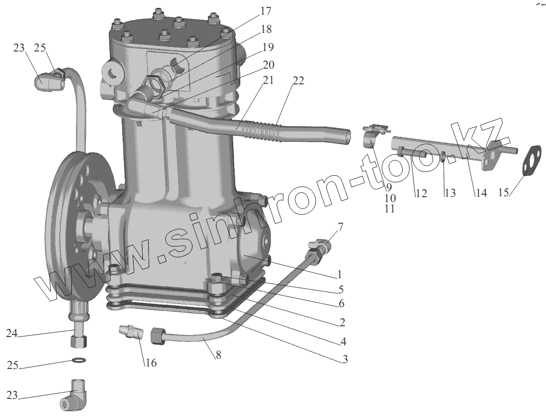 Каталог запасных частей к технике: МАЗ-551605. Установка пневмокомпрессора 642208-3500014 (-700)