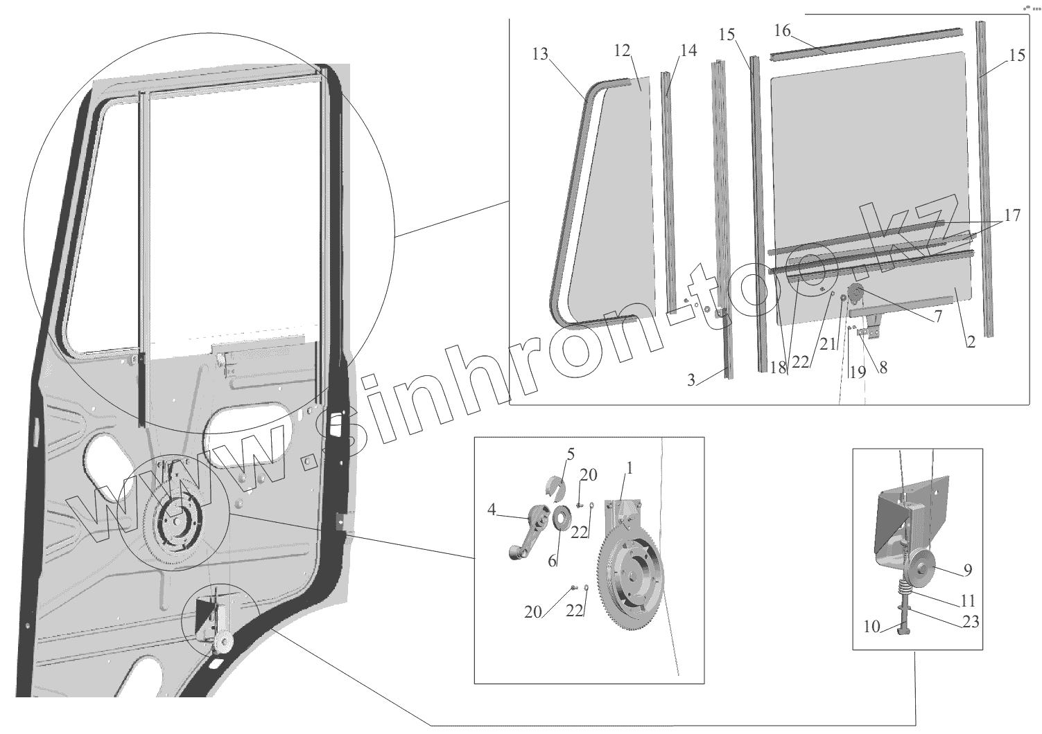 Каталог запасных частей к технике: МАЗ-551605. Установка стеклоподъемника и ручки стеклоподъемника