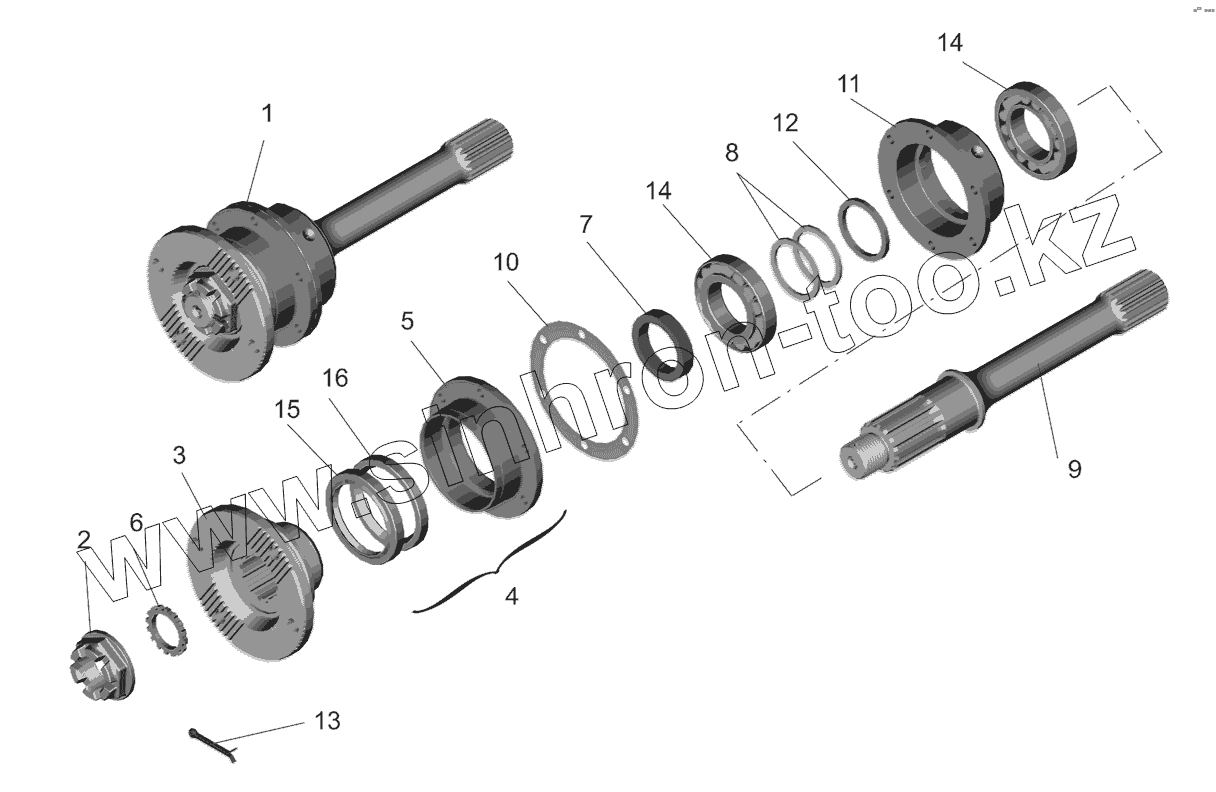 Каталог запасных частей к технике: МАЗ-551608, 630308. Мост средний. Вал задний