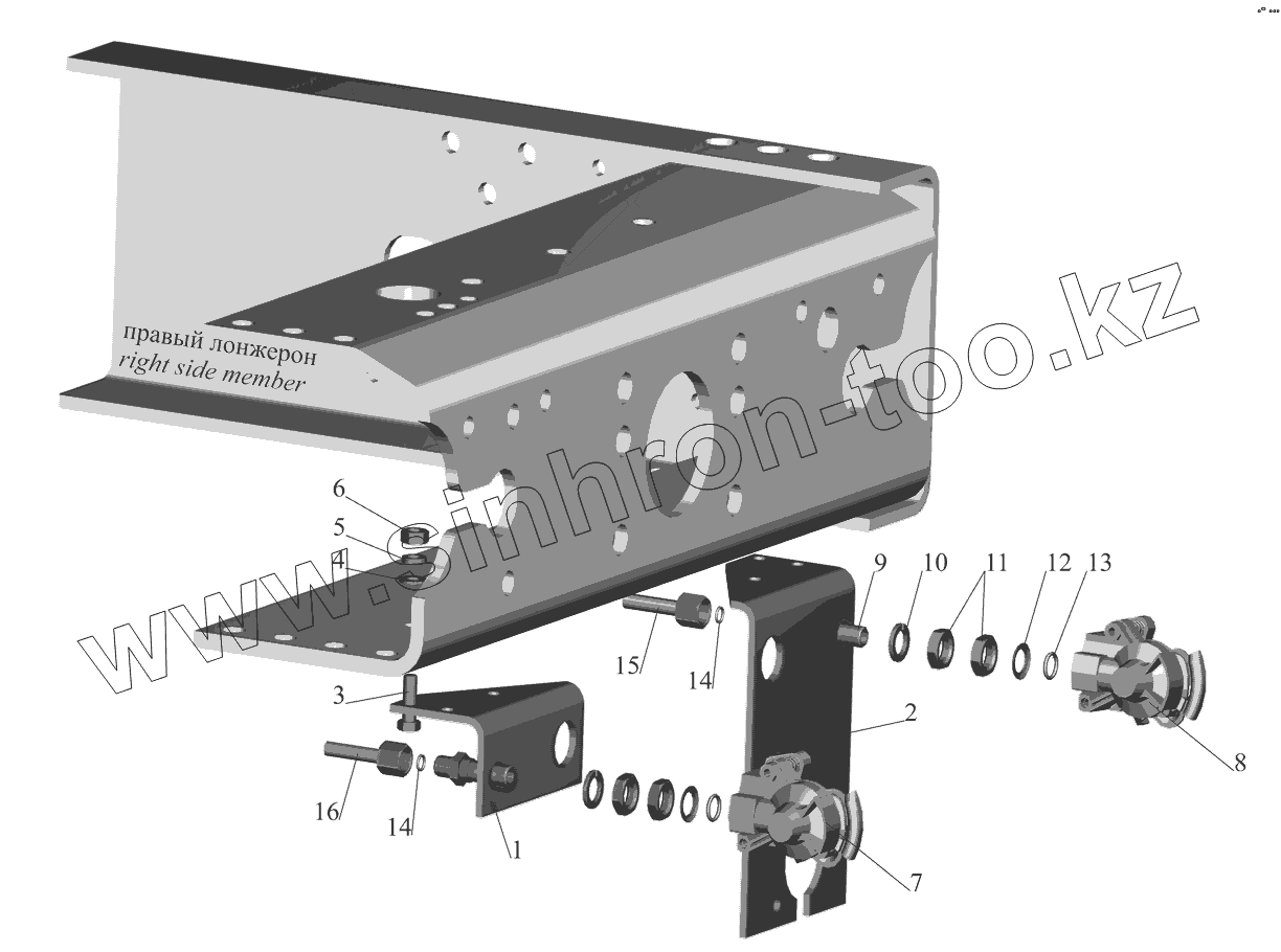 Каталог запасных частей к технике: МАЗ-551608, 630308. Пневмовыводы к прицепу 555105-3521004