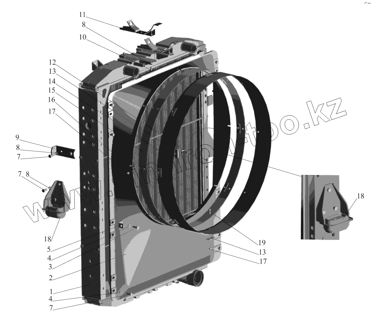 Каталог запасных частей к технике: МАЗ-551608, 630308. Радиатор с кожухом 543208-1301009
