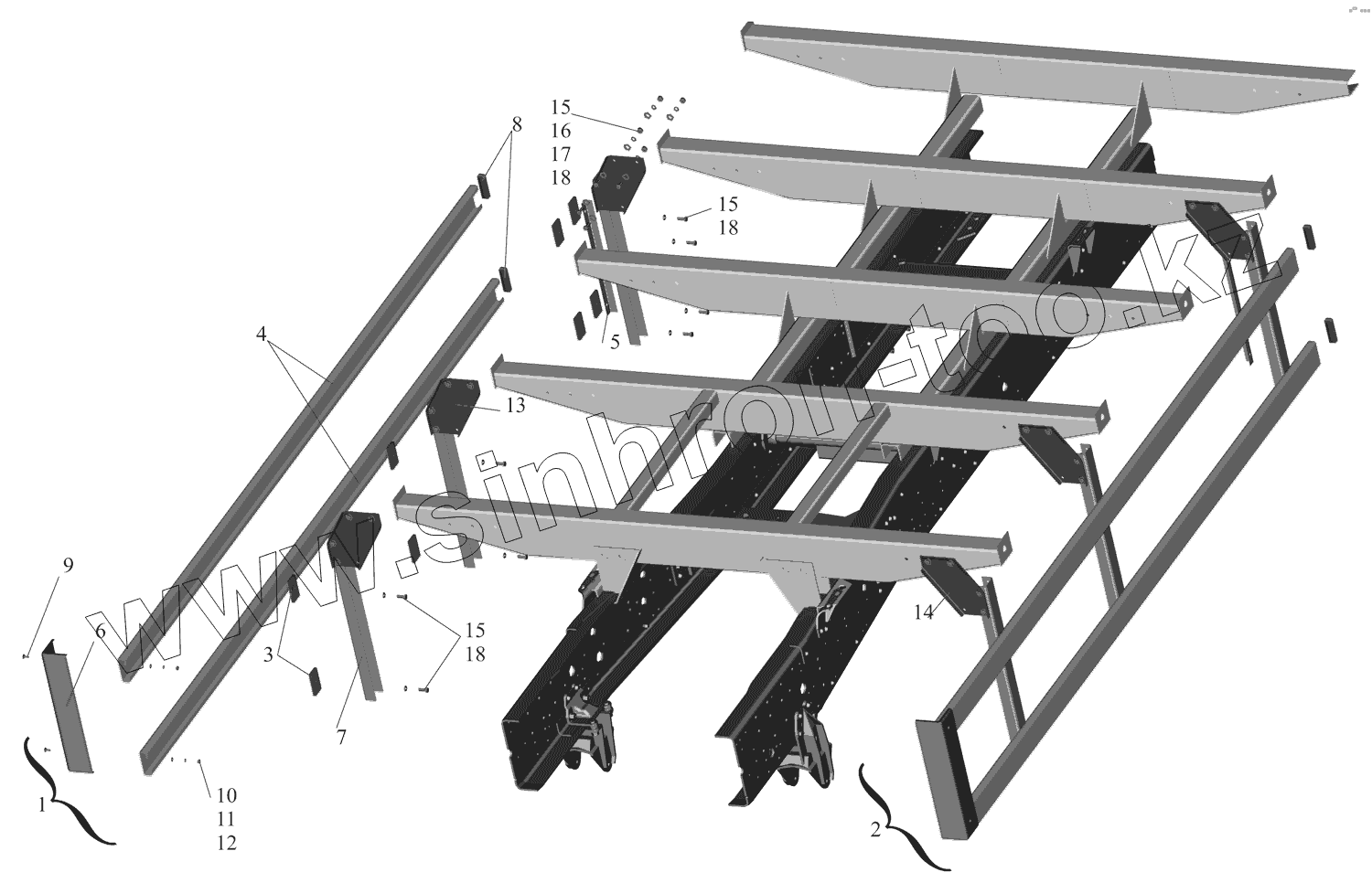 Каталог запасных частей к технике: МАЗ-551608, 630308. Установка бокового ограждения 6303-2800040