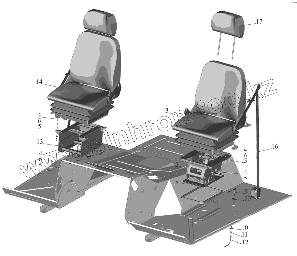 Каталог запасных частей к технике: МАЗ-551608, 630308. Установка и пневмопитание сидений 5433-6800006