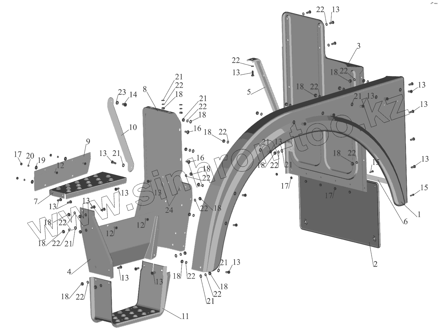 Каталог запасных частей к технике: МАЗ-551608, 630308. Установка оперения на большую кабину