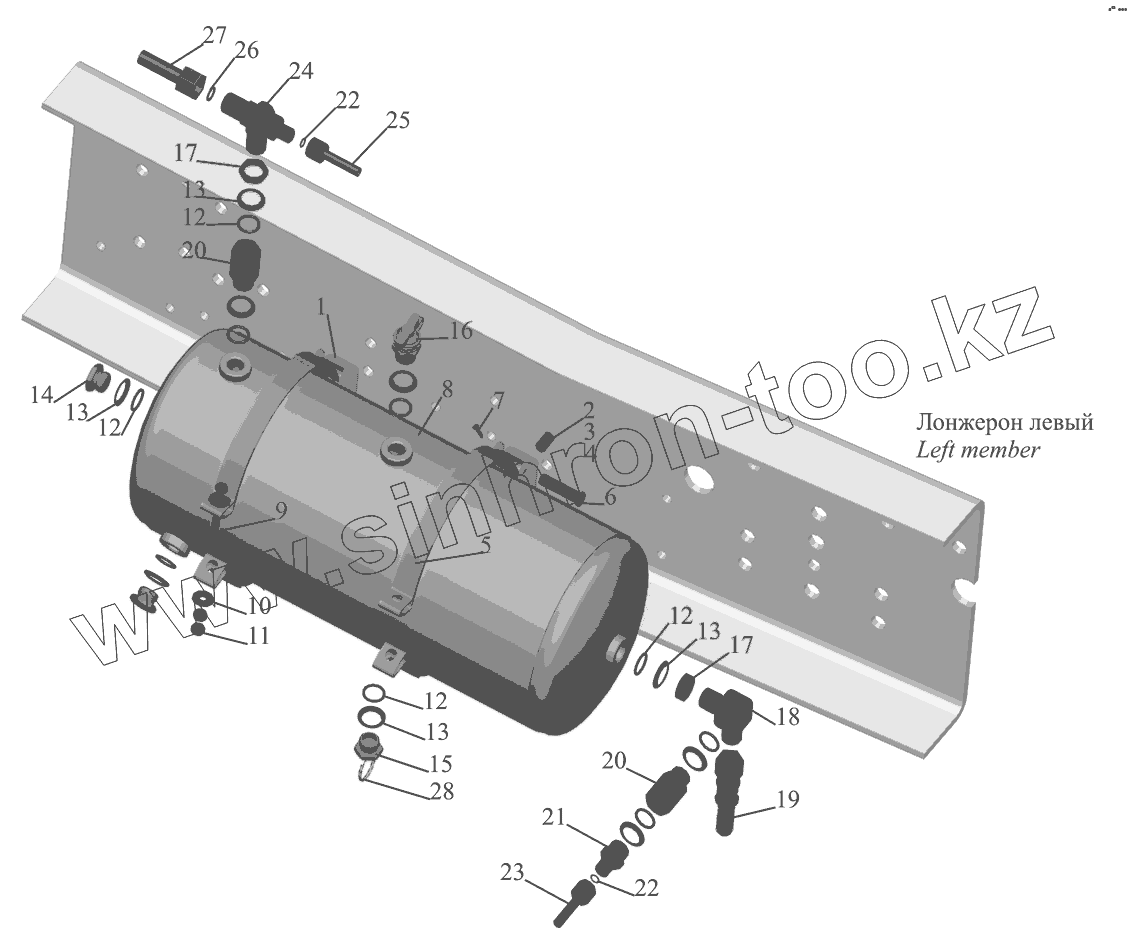 Каталог запасных частей к технике: МАЗ-551608, 630308. Установка ресивера 551608-3513005