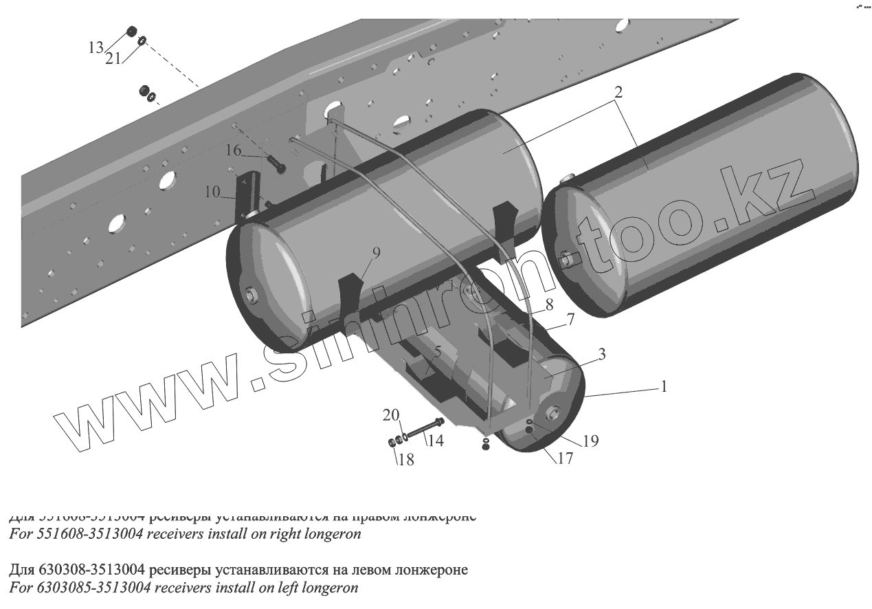 Каталог запасных частей к технике: МАЗ-551608, 630308. Установка ресиверов 551608-3513004, 630308-3513004