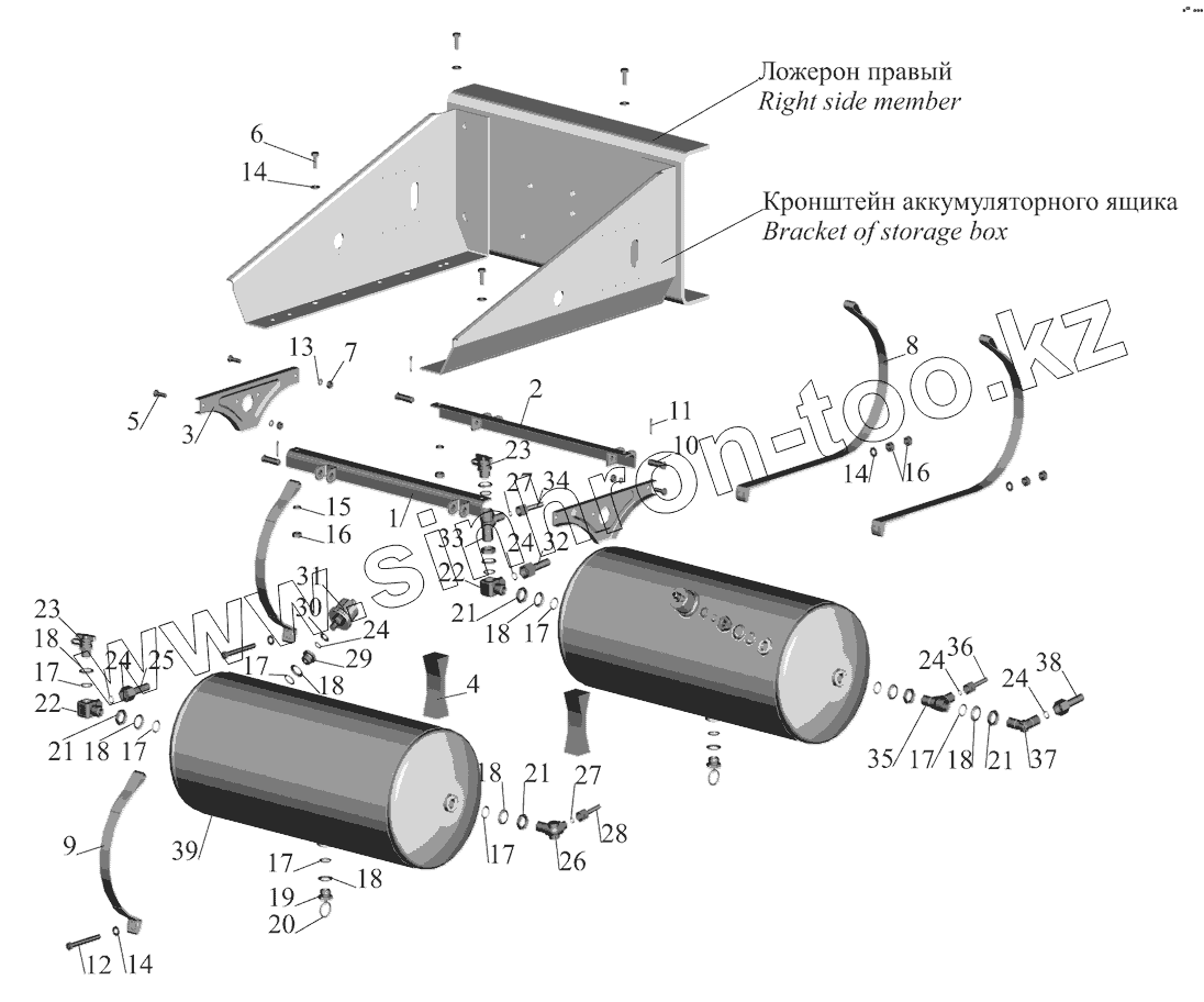 Каталог запасных частей к технике: МАЗ-551608, 630308. Установка ресиверов 630300-3513004