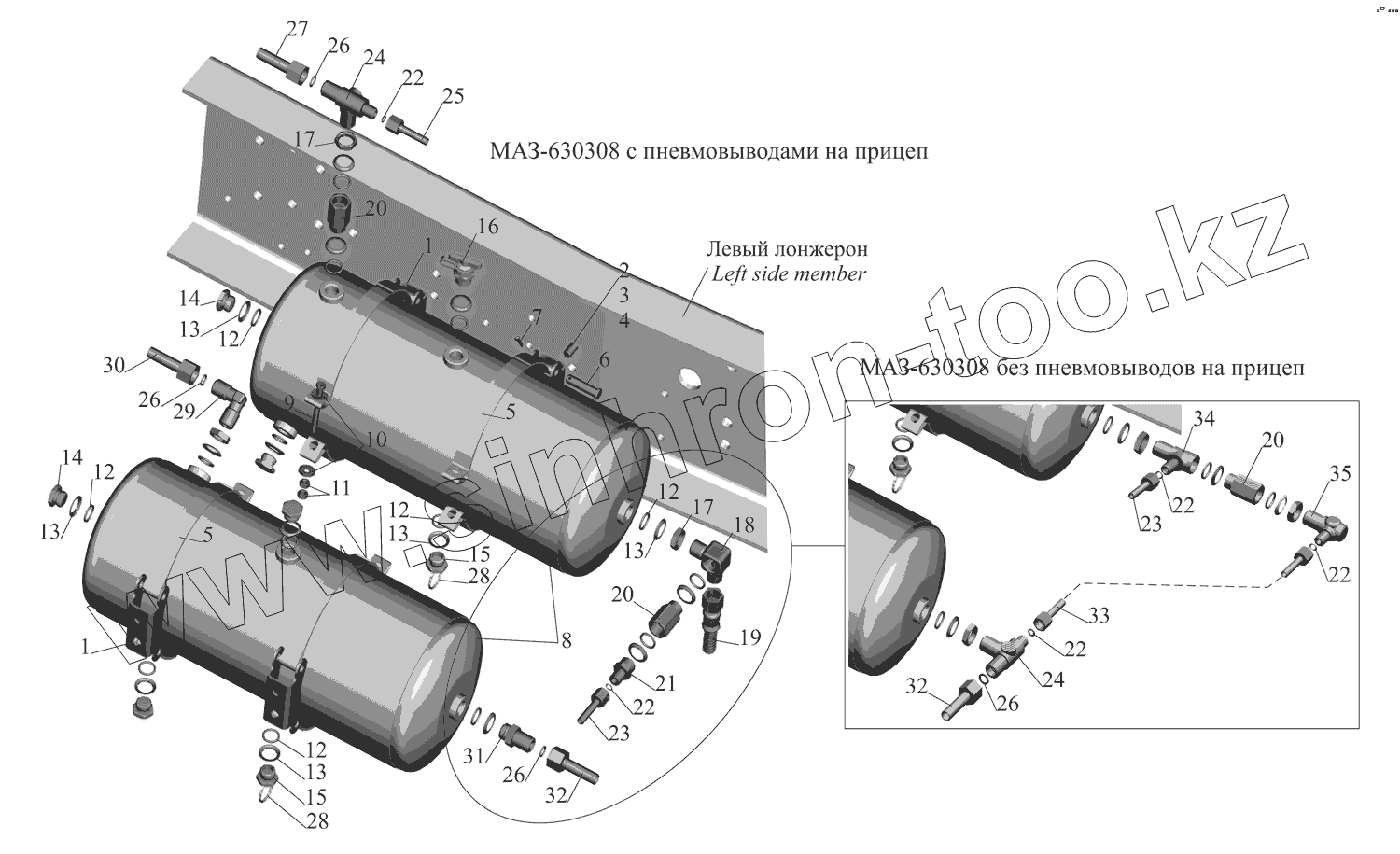 Каталог запасных частей к технике: МАЗ-551608, 630308. Установка ресиверов 63031-3513004