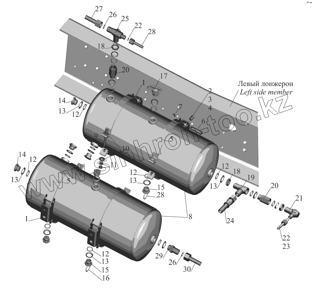 Каталог запасных частей к технике: МАЗ-551608, 630308. Установка ресиверов 63031-3513004