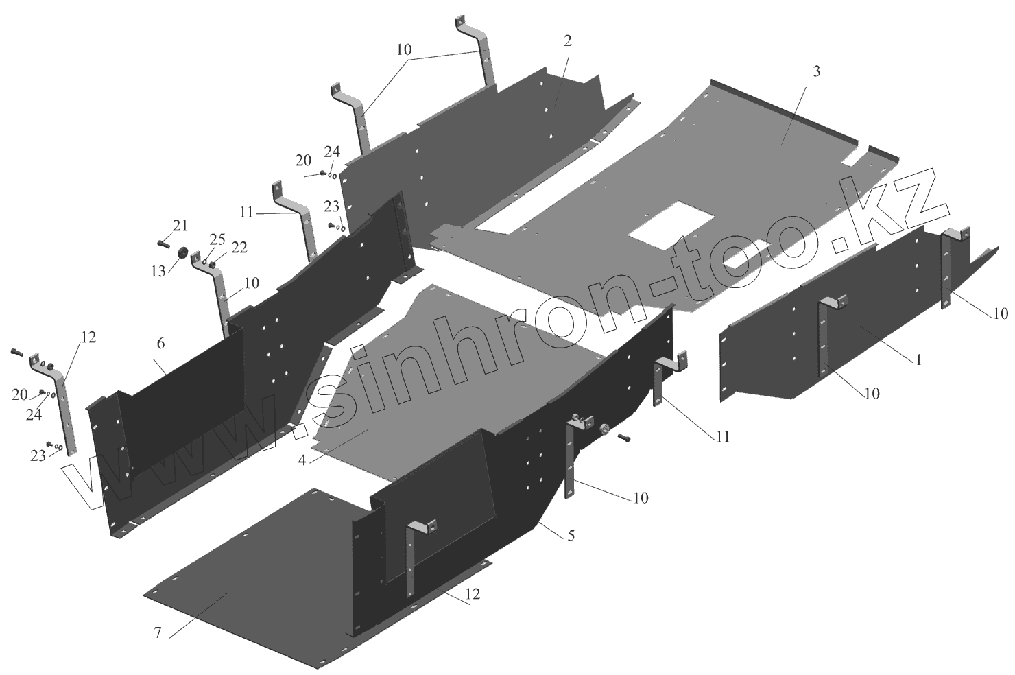 Каталог запасных частей к технике: МАЗ-551608, 630308. Установка шумоизоляционных экранов 642208-1061004-001