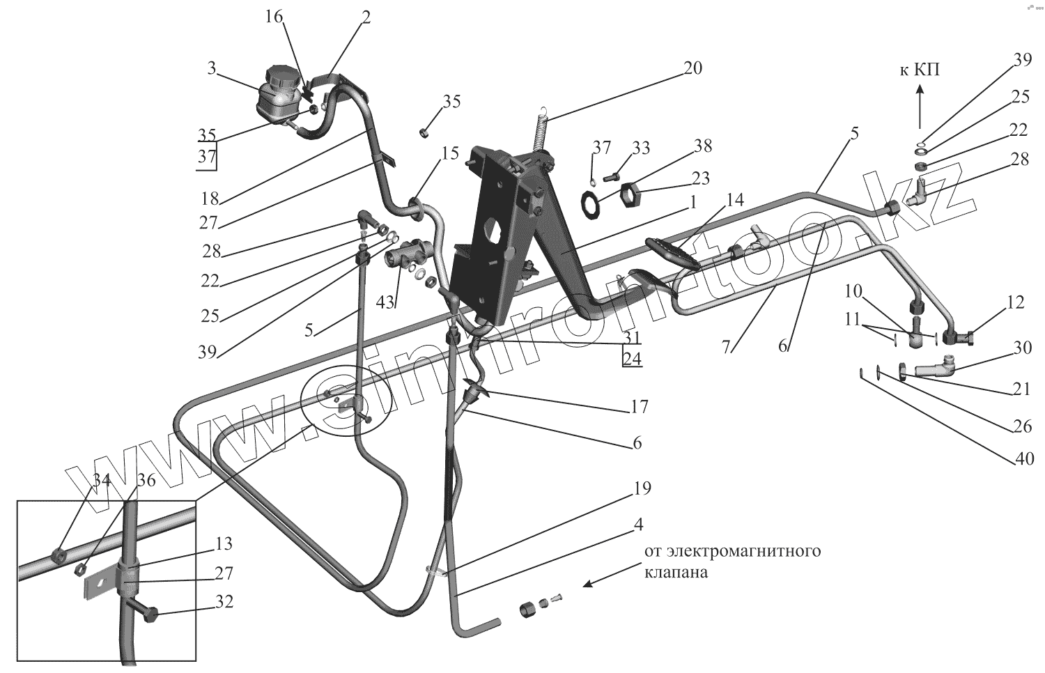 Каталог запасных частей к технике: МАЗ-551669. Механизм управления сцеплением 64226-1600005-010