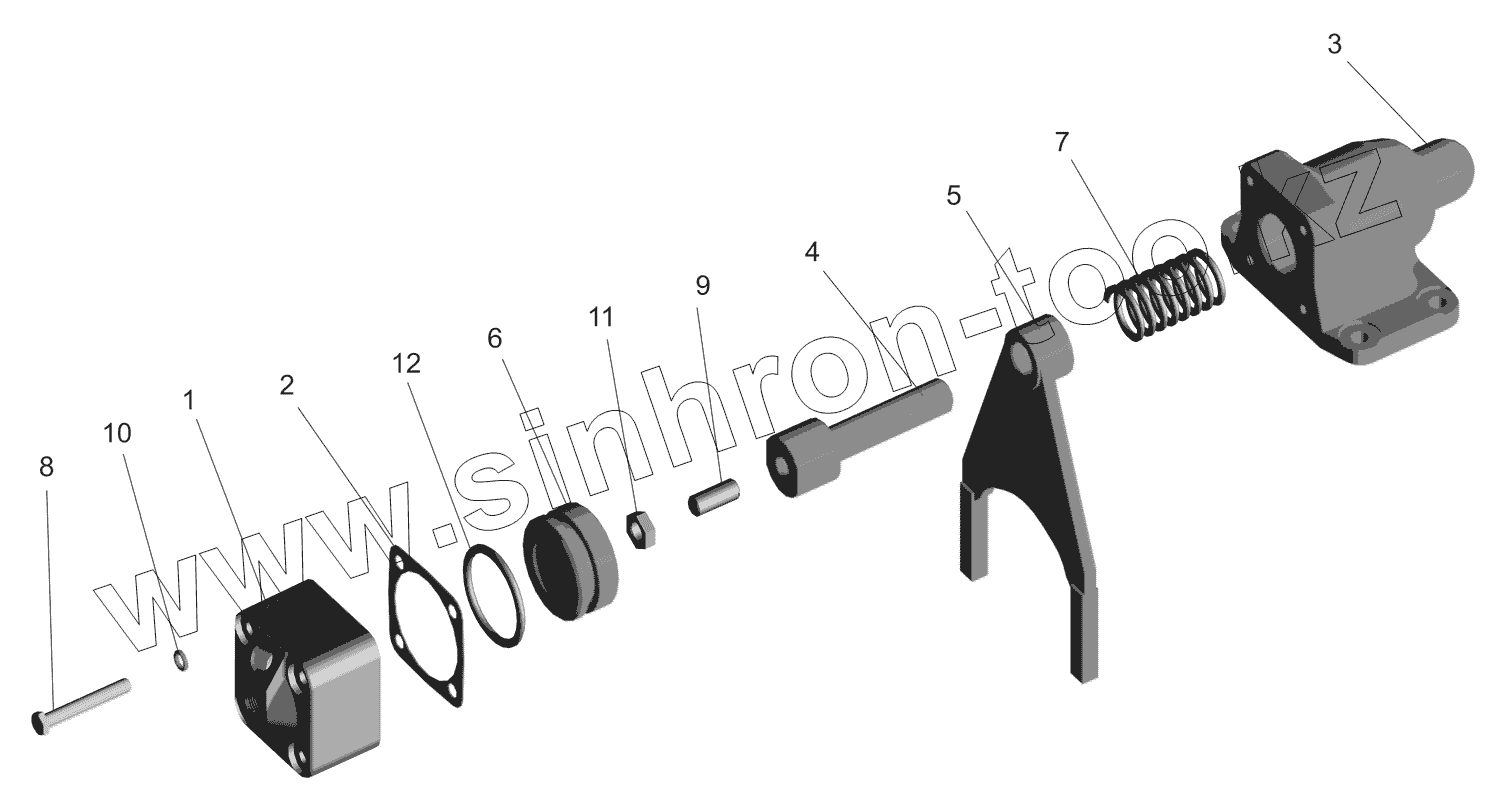 Каталог запасных частей к технике: МАЗ-551669. Редуктор среднего моста. Механизм блокировки