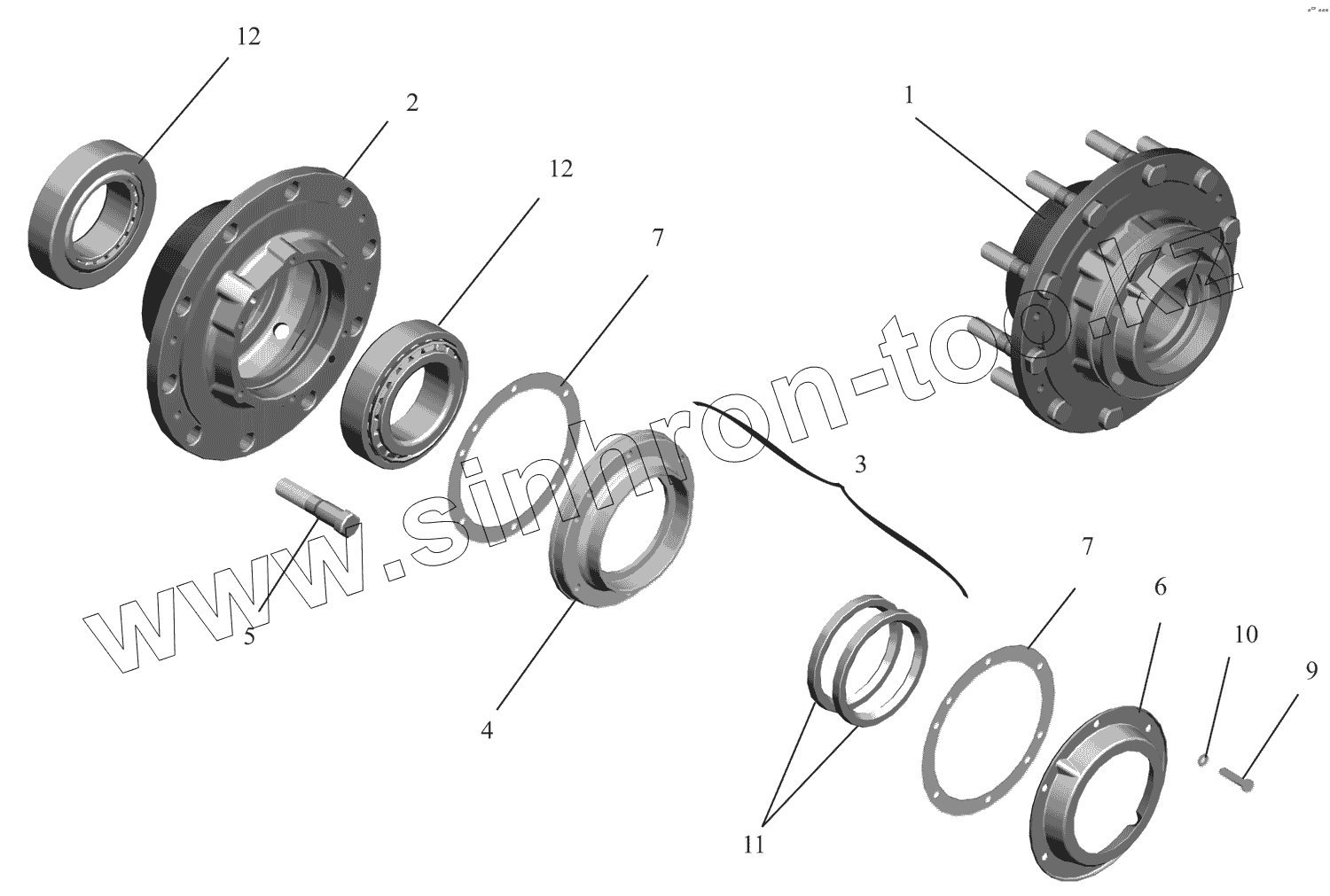 Каталог запасных частей к технике: МАЗ-551669. Ступица среднего моста