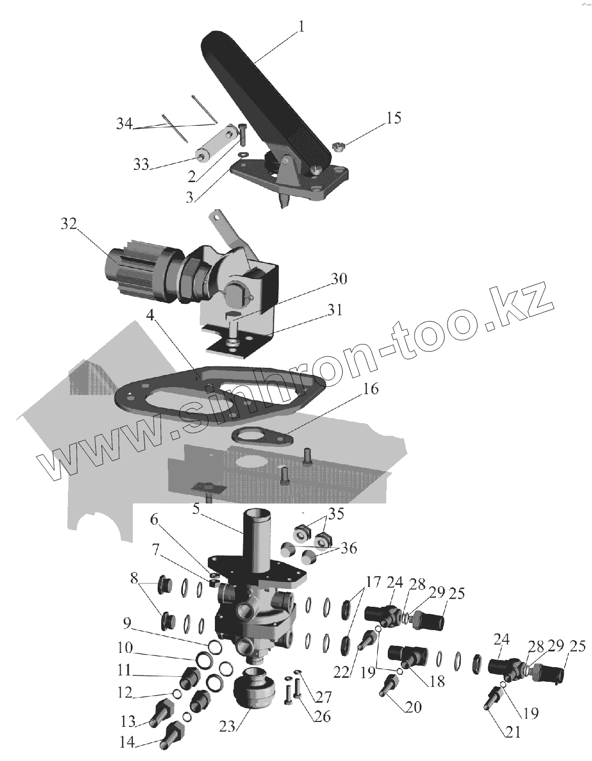 Каталог запасных частей к технике: МАЗ-551669. Тормозной кран с присоединительной арматурой