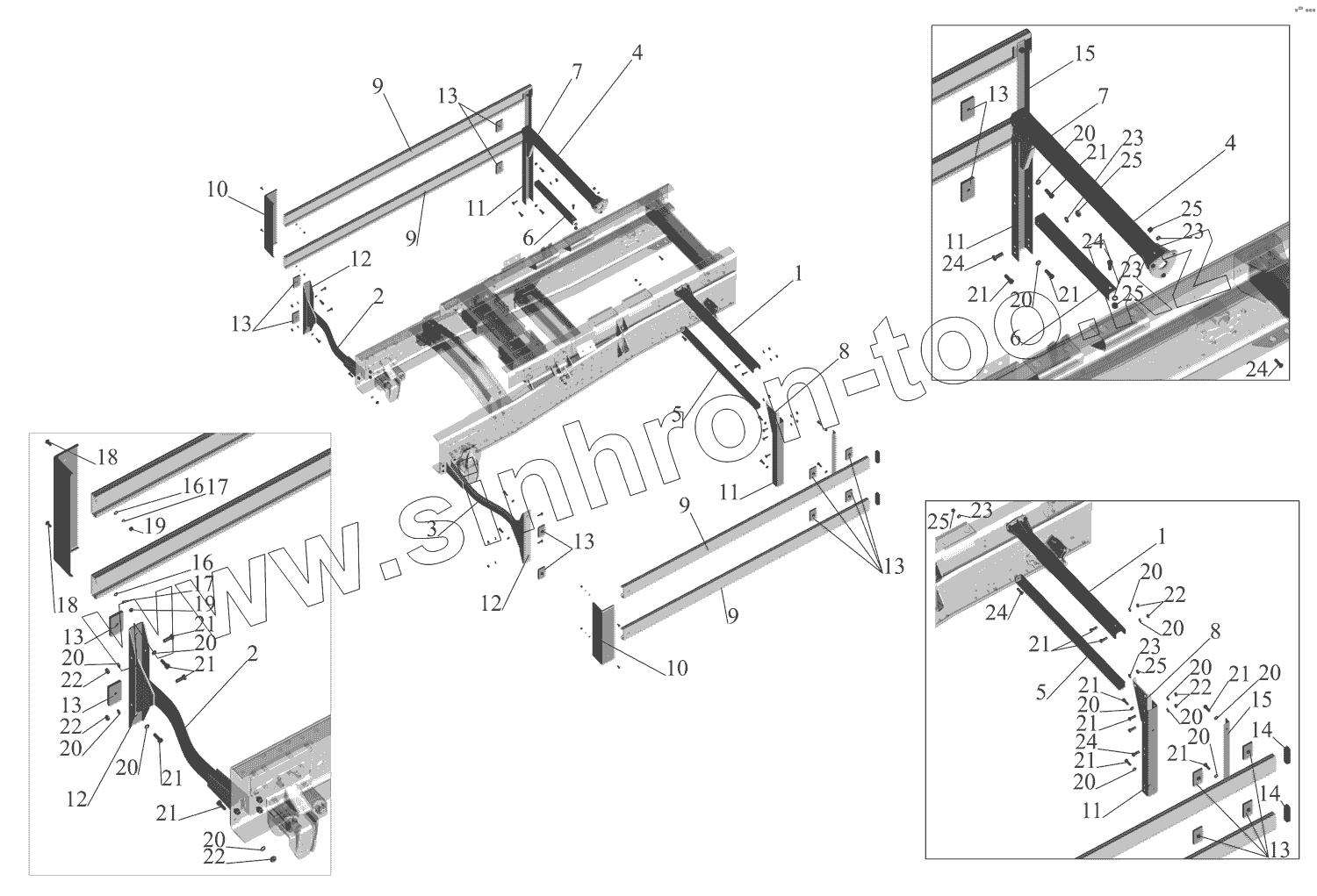 Каталог запасных частей к технике: МАЗ-551669. Установка бокового ограждения 551669-2800040-010