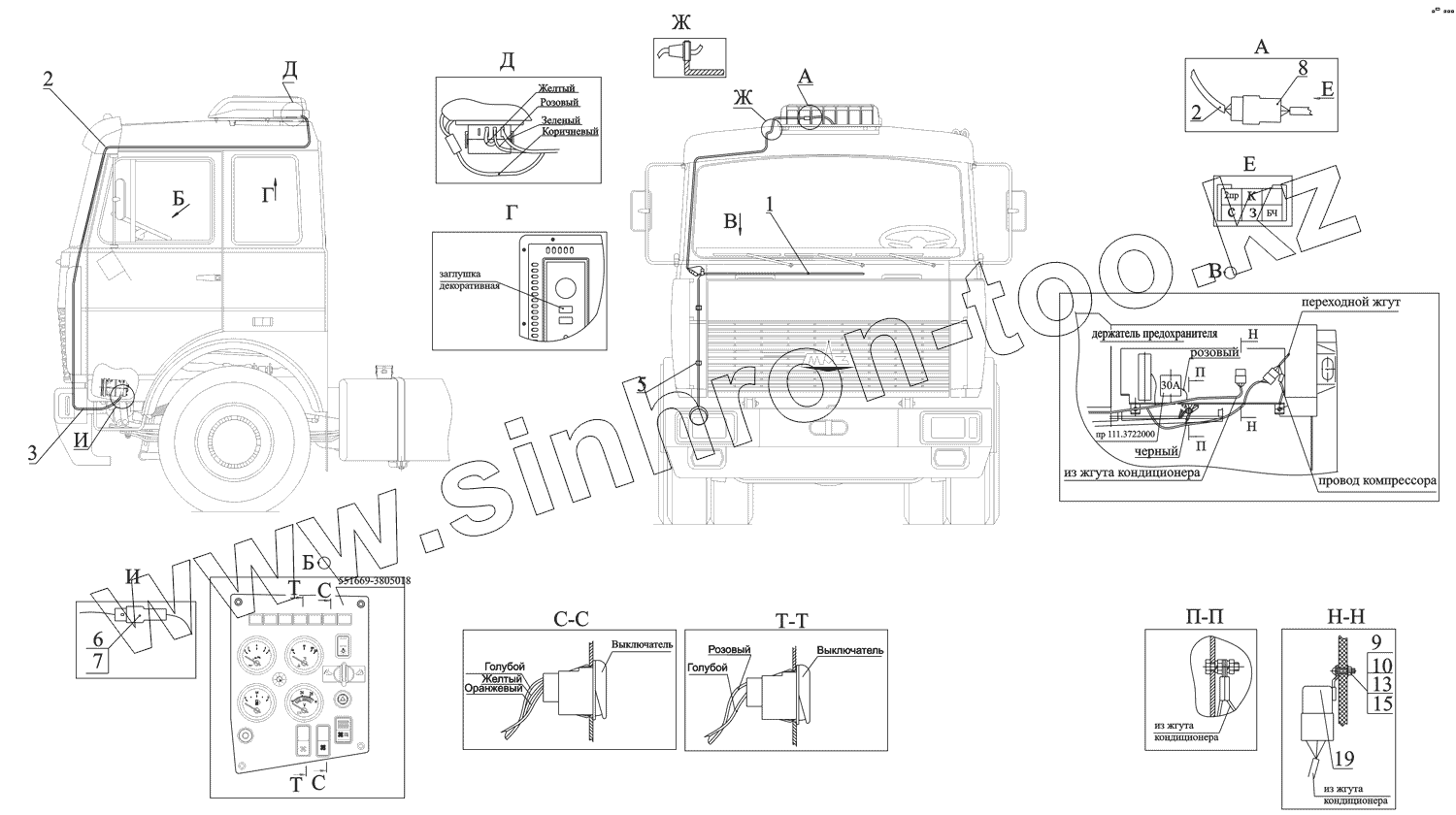 Каталог запасных частей к технике: МАЗ-551669. Установка электрооборудования кондиционера 64226-3700092-020