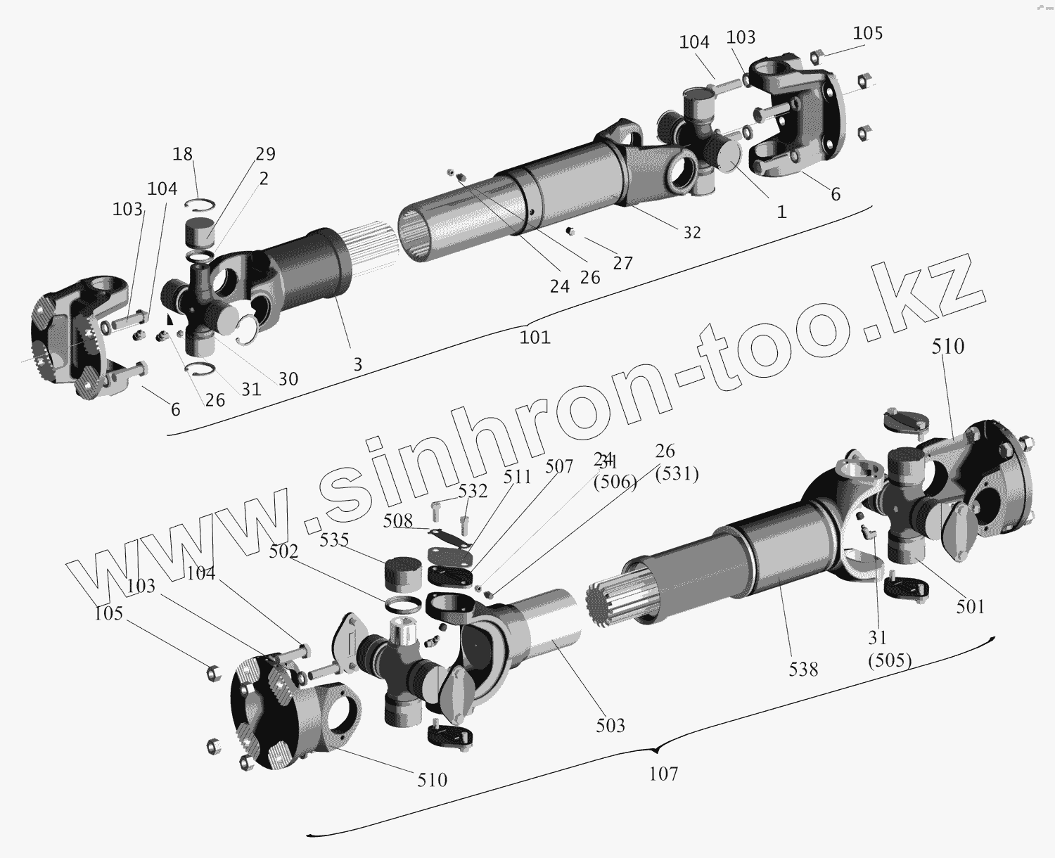 Каталог запасных частей к технике: МАЗ-551669. Установка карданных валов 551669-2200000