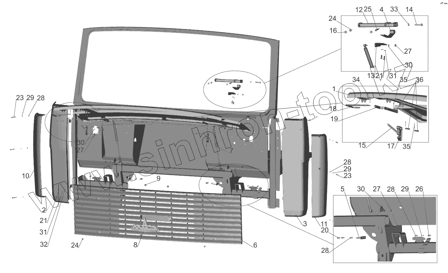 Каталог запасных частей к технике: МАЗ-551669. Установка облицовки и боковых щитков